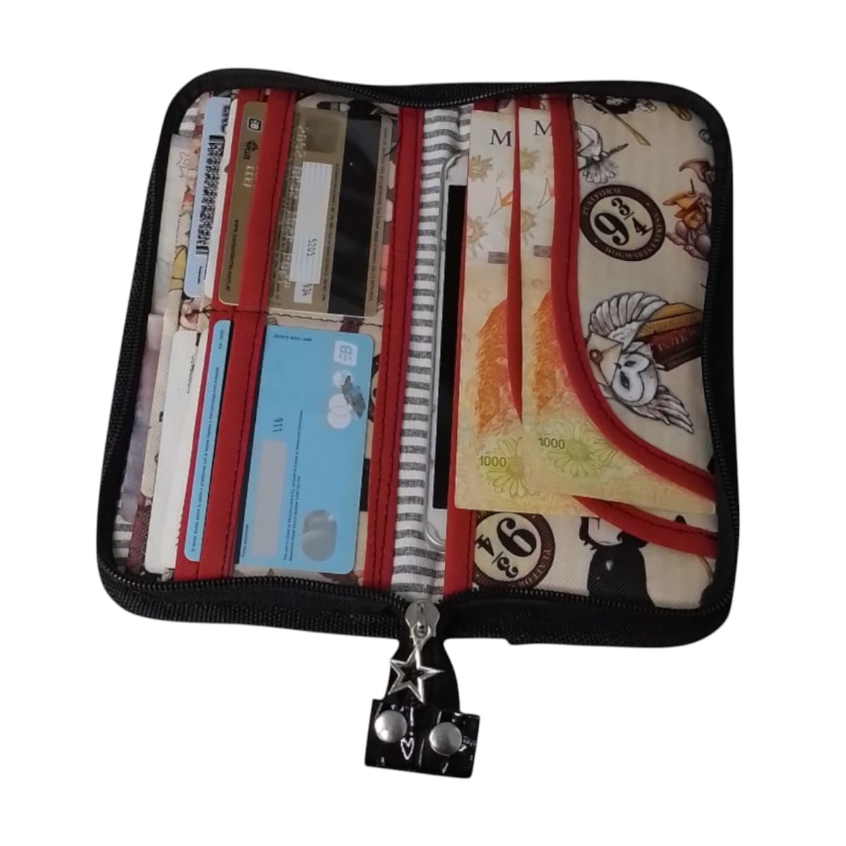 un producto hecho 100% artesanal cierra completamente para que nada se caiga más una solapa independiente para tarjetas y dinero .