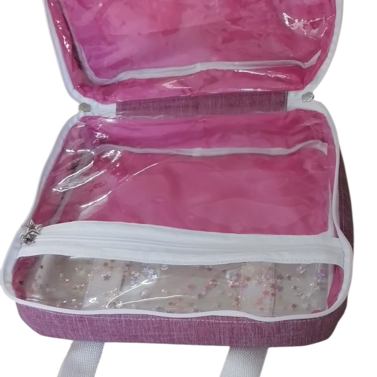 La valija Zoe, creada y pensando para facilitar tus salidas, cuenta con doble bolsillo en nylon cristal para tener todo a la vista no perder tiempo. Más un bolsillo frontal idea para el celu.