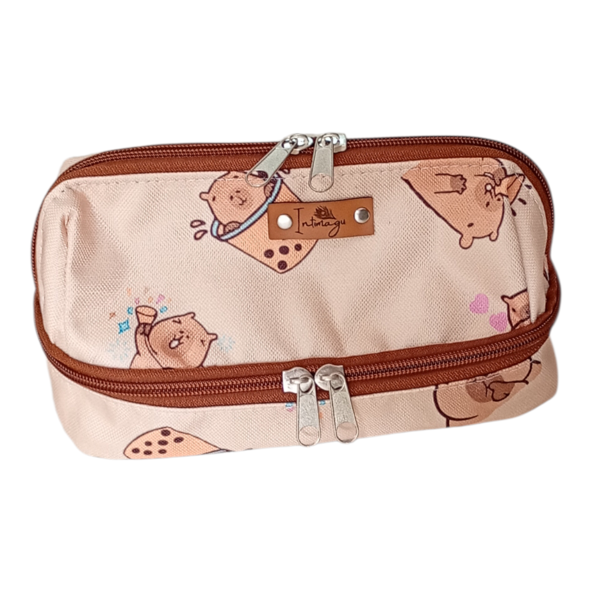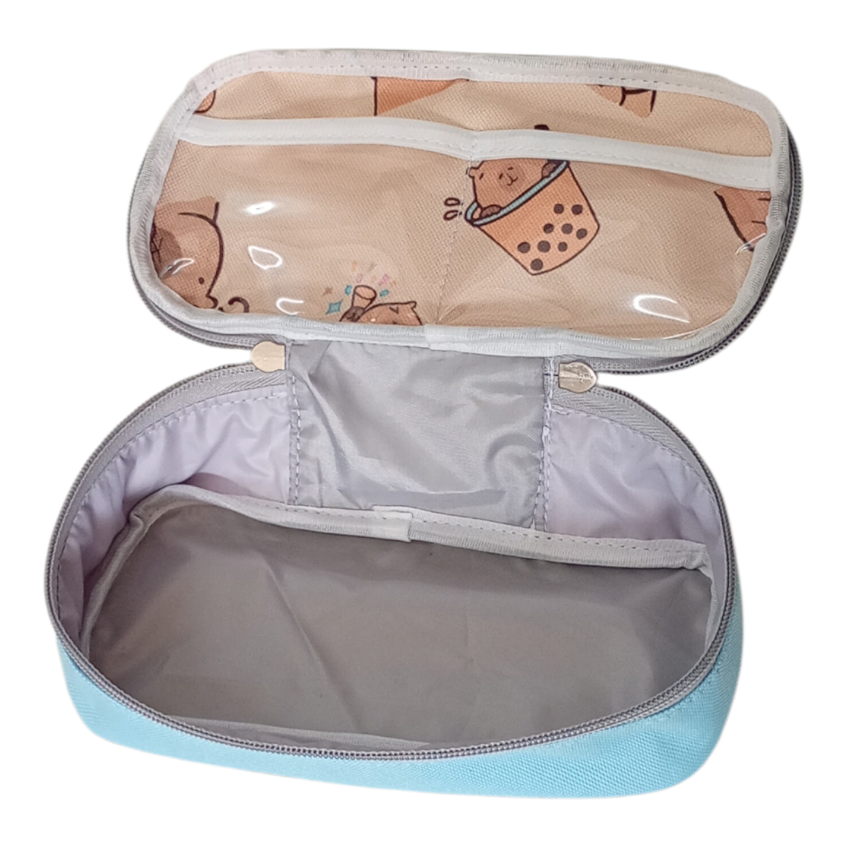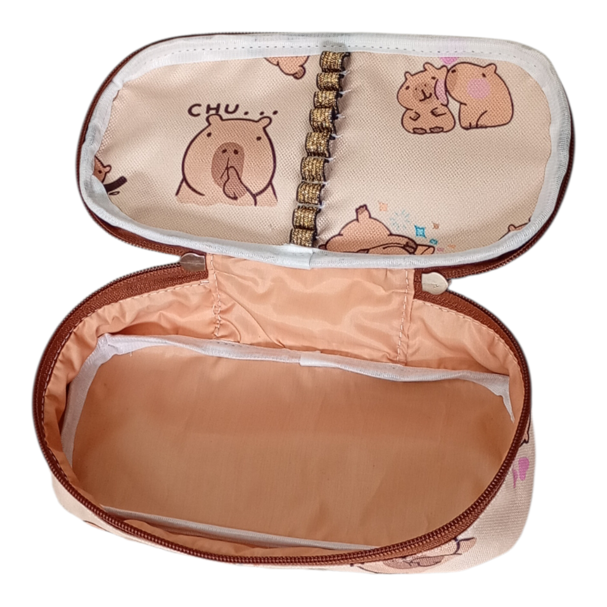 Bolsillo inferior para lápices y bolsillo superior con espacio adicional para las útiles útiles también la podes usar como porta cosméticos